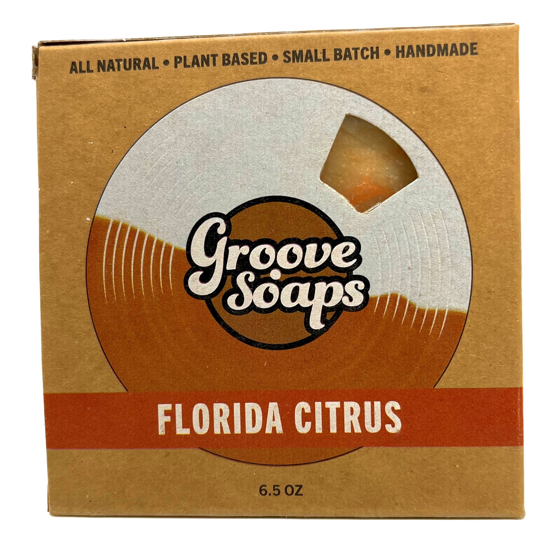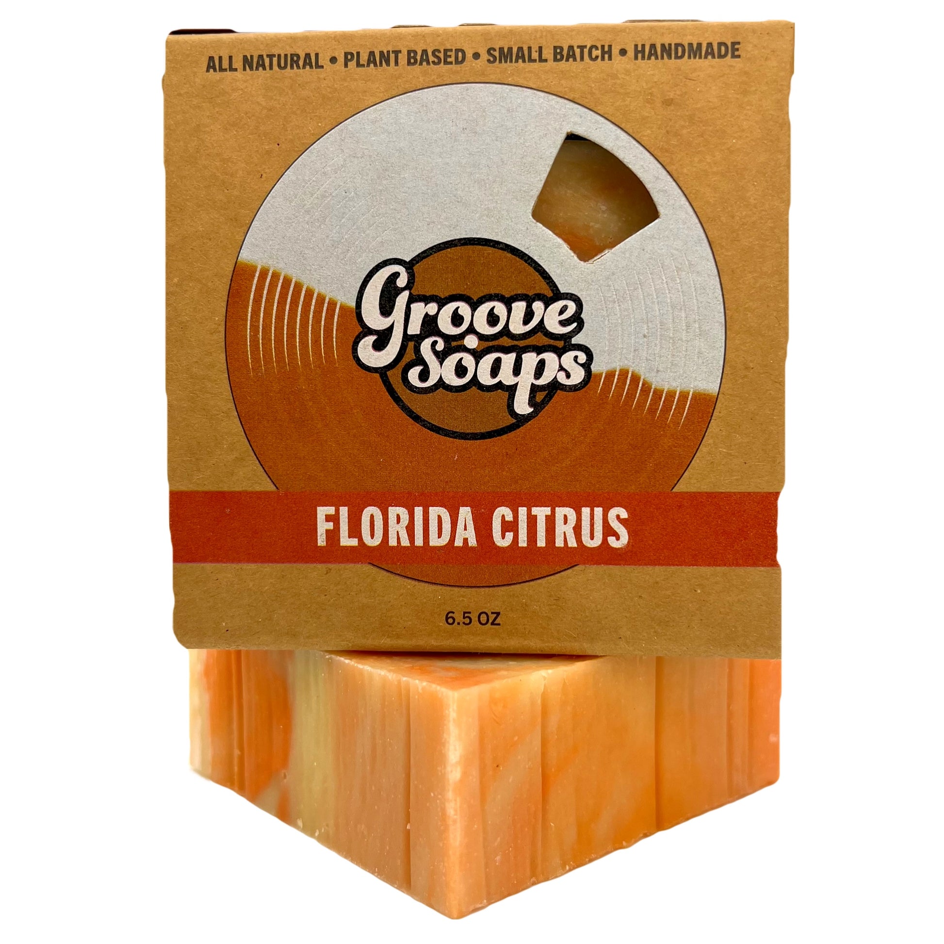 6.5oz handmade plant based soap bar cut with guitar strings in a fully compostable box.