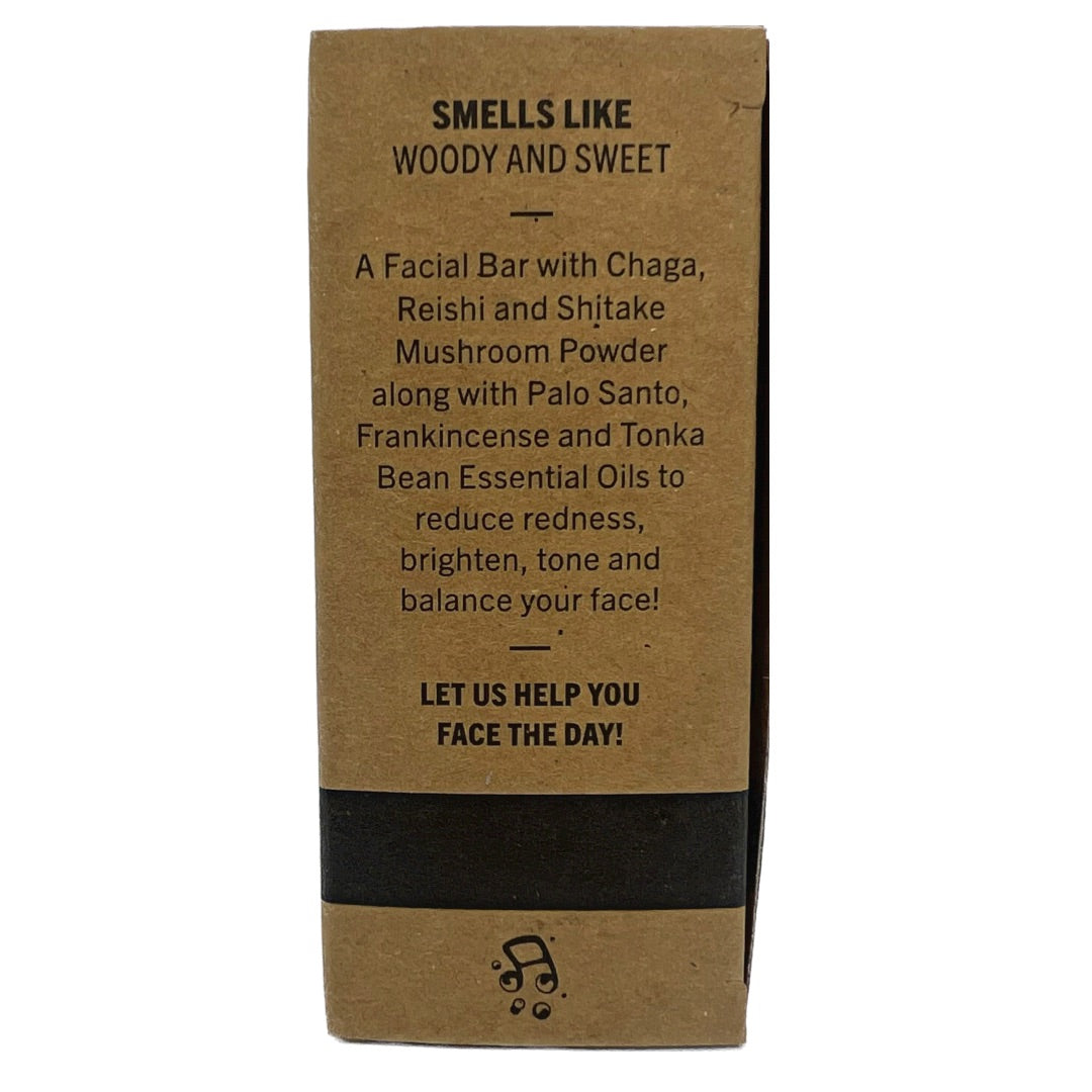 A Facial Bar with Chaga, Reishi and Shitake Mushroom Powder along with Palo Santo, Frankincense and Tonka Bean Essential Oils to reduce redness, brighten, tone and balance your face! Let Us Help You Face The Day!