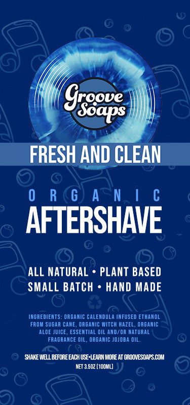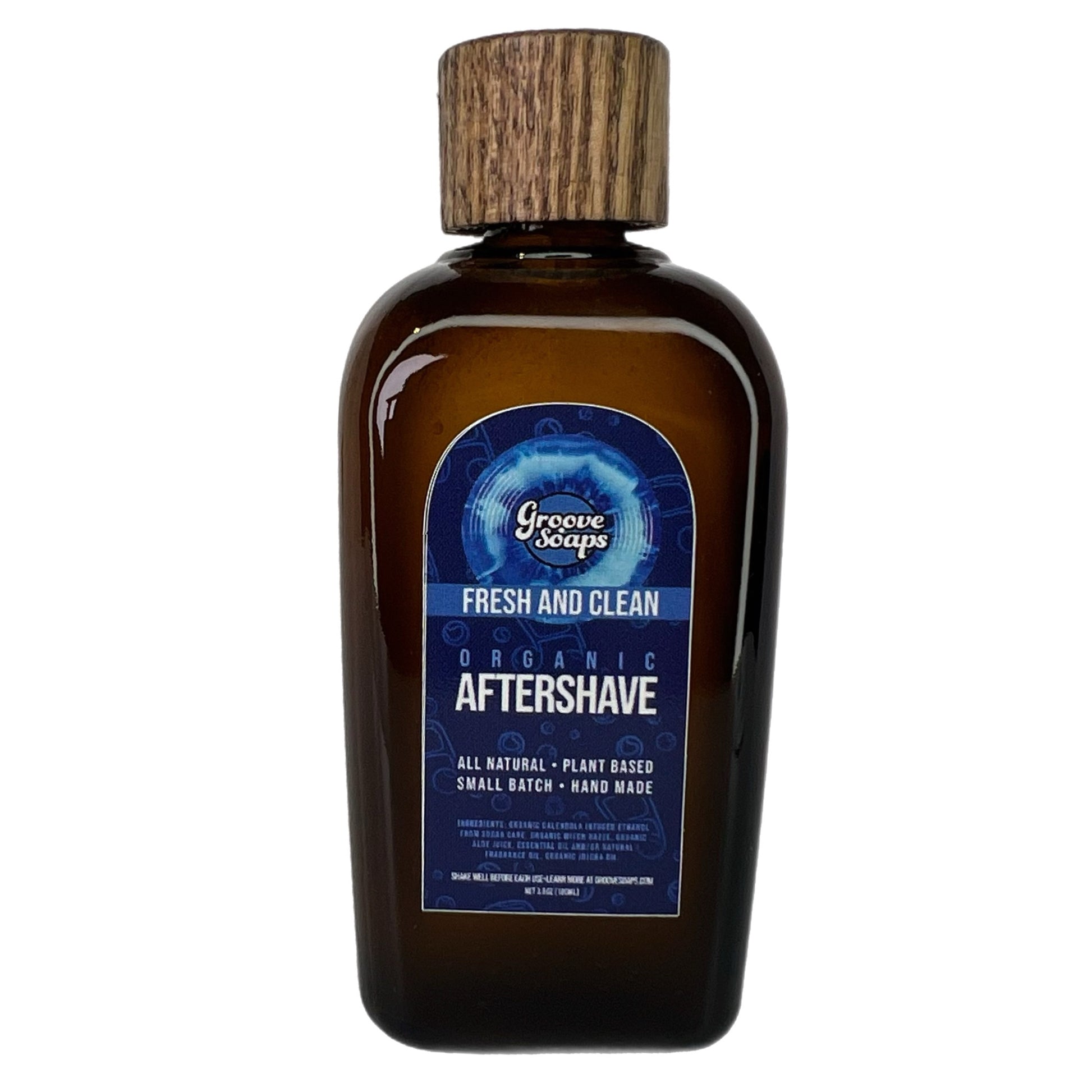 3.5oz handmade organic ethanol based aftershave in a recycled glass bottle with bamboo accents and a diffuser.