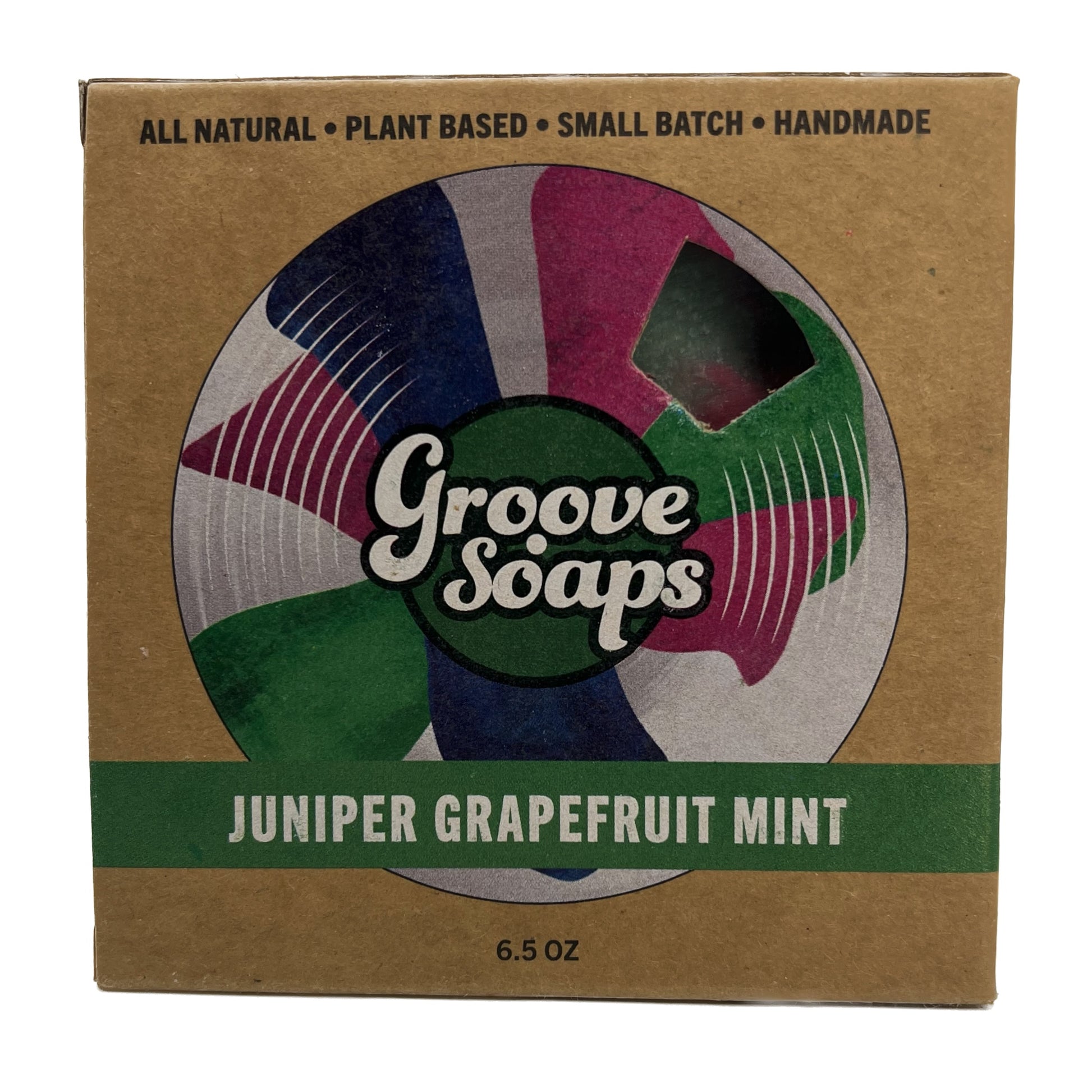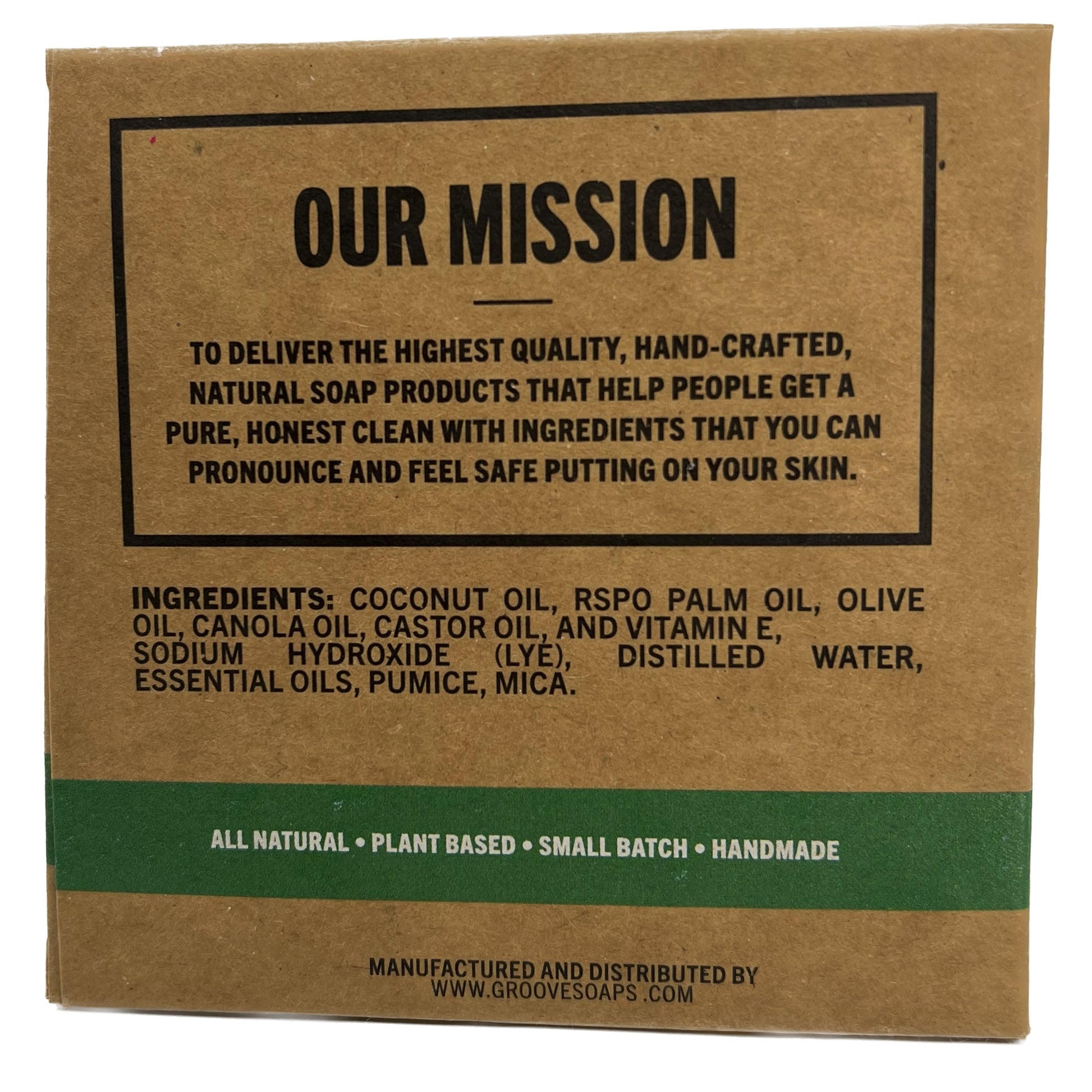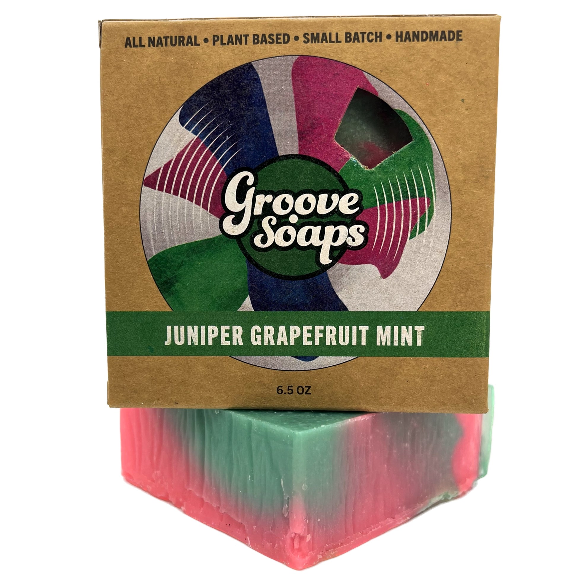 6.5oz handmade plant based soap bar cut with guitar strings in a fully compostable box.