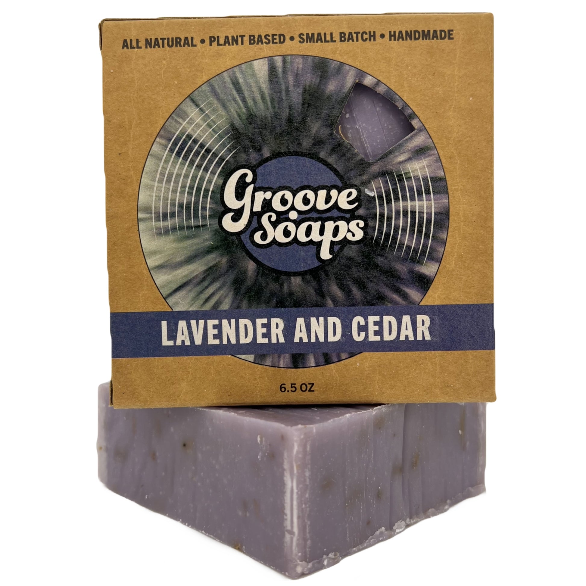 6.5oz handmade plant based soap bar cut with guitar strings in a fully compostable box.