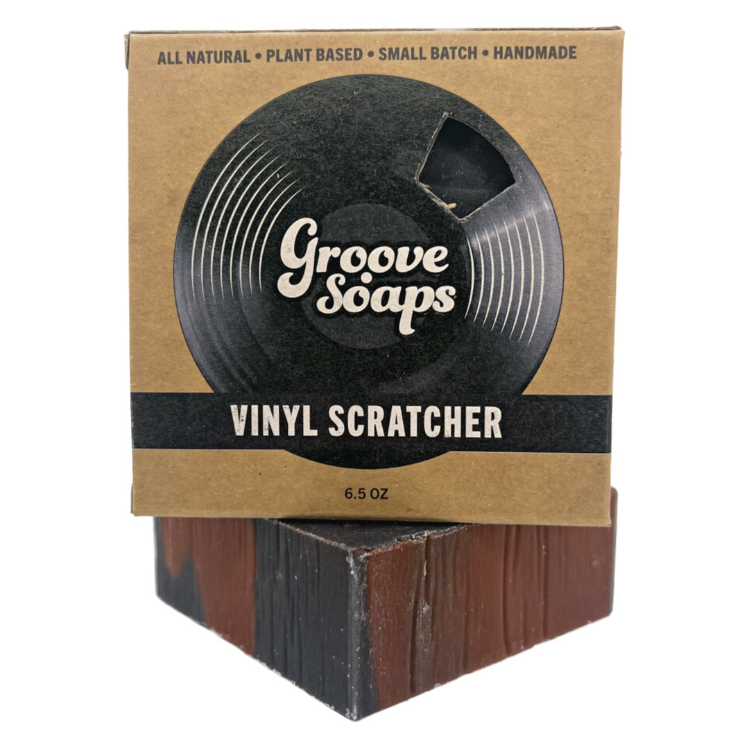 6.5oz handmade plant based soap bar cut with guitar strings in a fully compostable box.